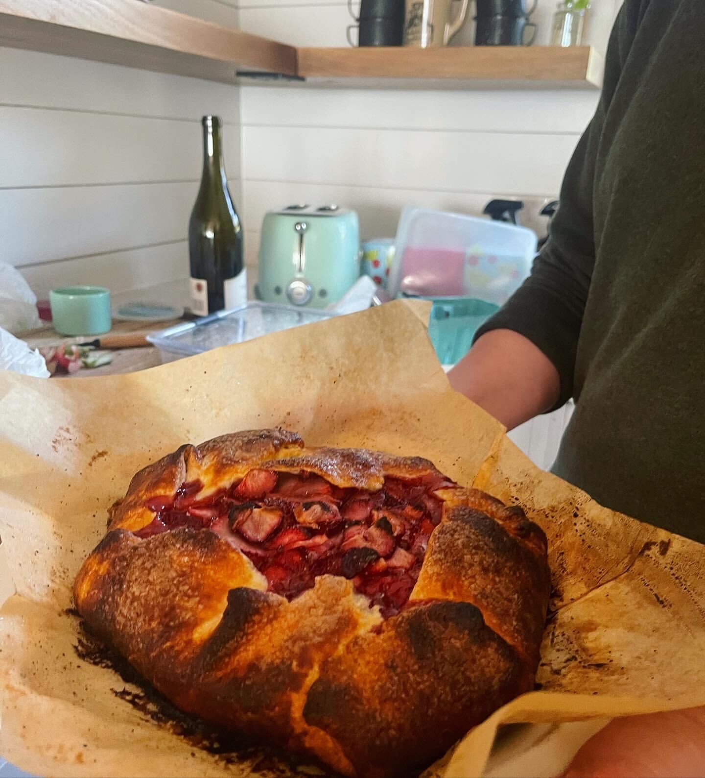 Last weekend I had the gift of escaping to the ocean for a brief spell with a group of cherished women, and (the best cook I know) Julie Sargent made the most stunning strawberry galette with farm strawberries from our CSA Red Fire Farm. It may have been the fact that we ate it with our hands under the stars by a campfire, but it was among the most delicious things I’ve ever tasted.